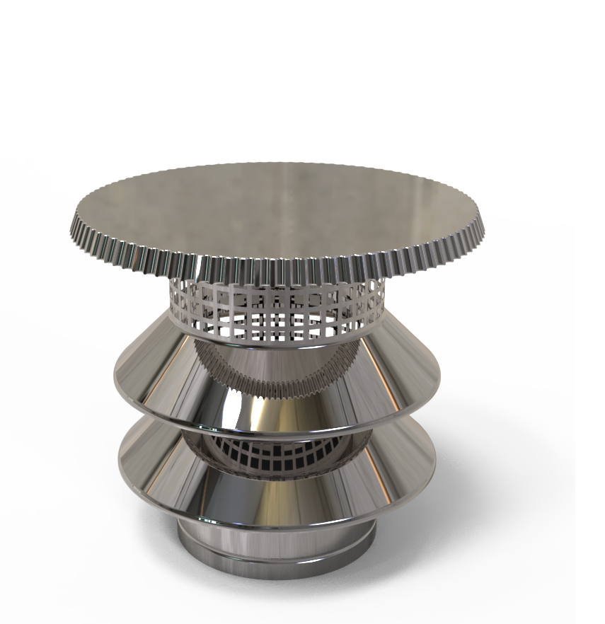 - Integriertes Edelstahlnetz – zusätzlicher Schutz vor Vögeln, Laub und Funkenflug, ideal bei Festbrennstoffen.
