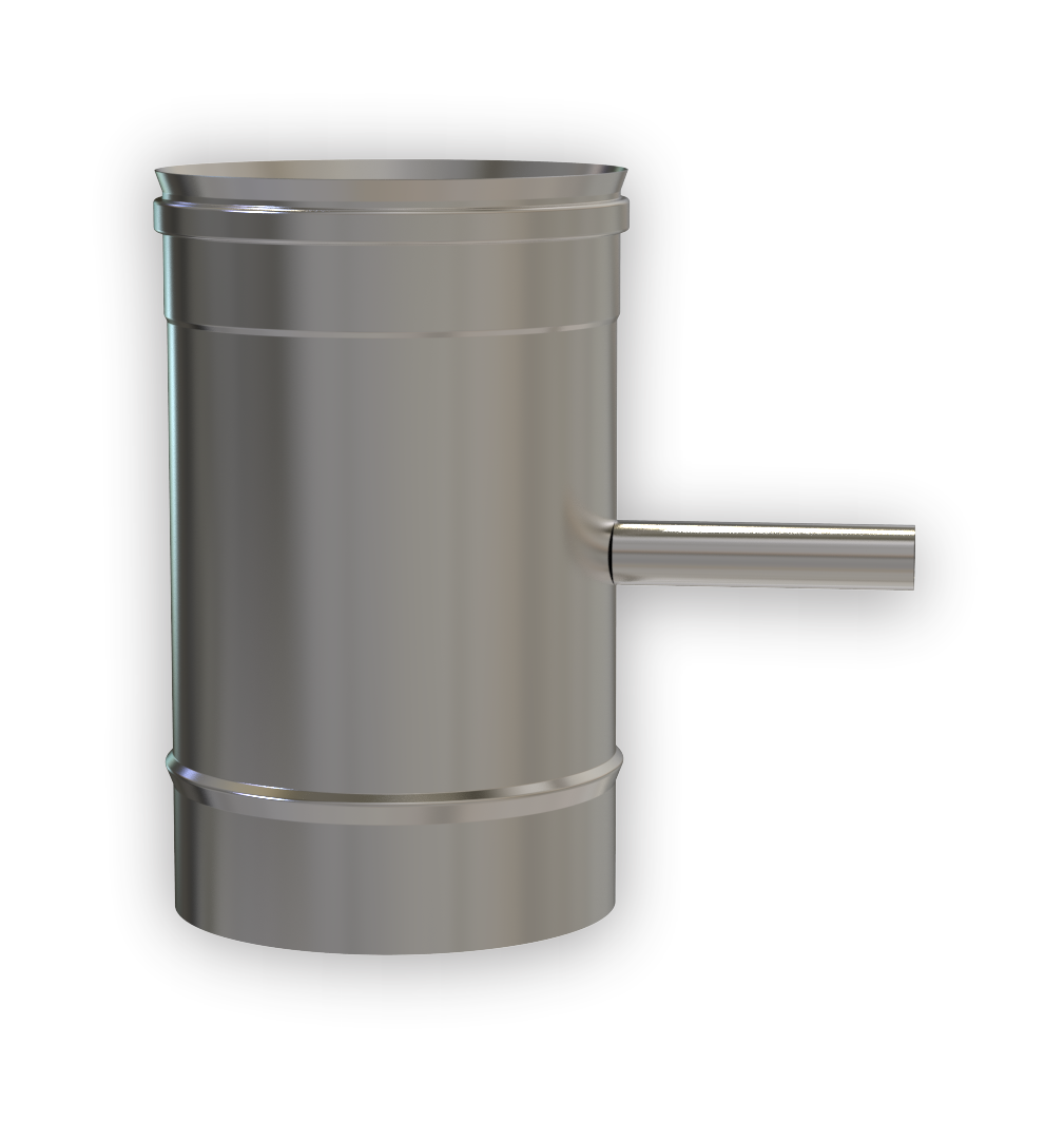 Die seitlich integrierte Kondensatfalle mit Ablaufstutzen sorgt dafür, dass Kondenswasser gezielt abgeführt wird und sich nicht im Abgasrohr sammelt. Gefertigt aus Edelstahl AISI 316L ist das Bauteil temperaturbeständig bis 600 °C, korrosionsfest und für den dauerhaften Einsatz in Kamin-, Ofen- und Heizungsanlagen geeignet.